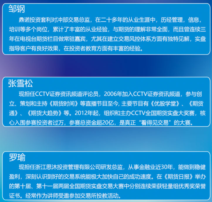 中天期货策略研讨会,特邀产业、机构嘉宾在线分享,欢迎大家参加本次培训,如有问题可以在线提问!