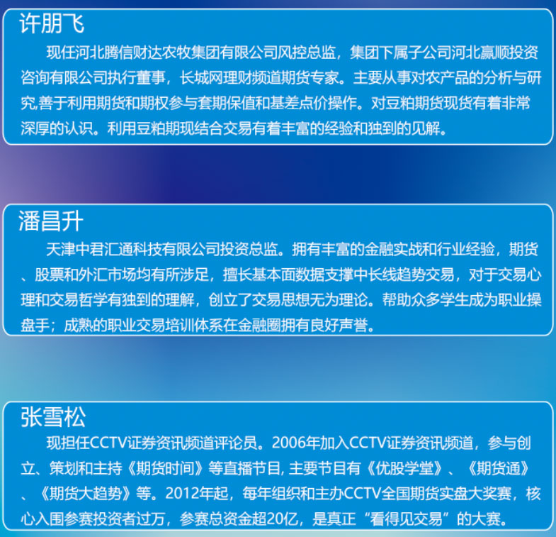 中天期货策略研讨会,特邀产业、机构嘉宾在线分享,欢迎大家参加本次培训,如有问题可以在线提问!